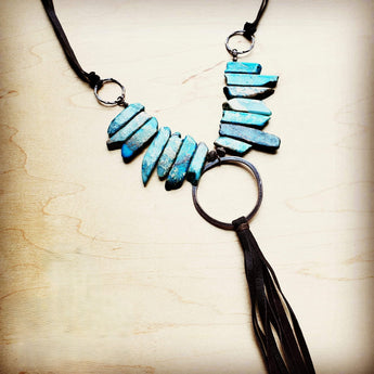 Imperial Jasper Slab Necklace w/ Copper Hoop & Tassel 252h