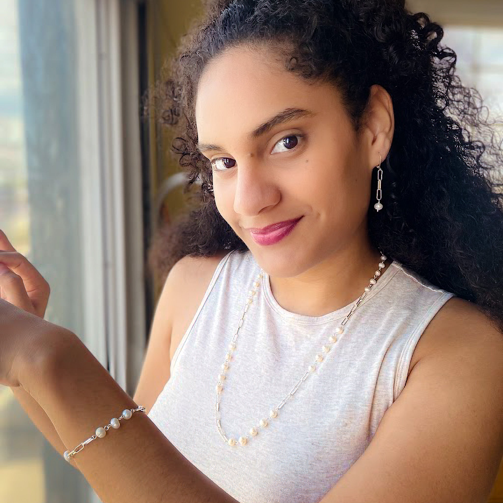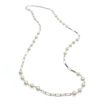 Silver paperclip chain and freshwater pearls pair together in our new 27 inch necklace. Layer it with your favorite Alegria pendants or wear it alone for an easy seasonless staple.