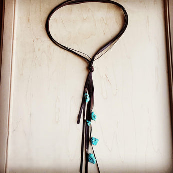 Experience the boho chic style with our handcrafted Brown Leather Lasso Necklace! Made with genuine leather and accented with stunning turquoise beads, this necklace adds a touch of natural elegance to any outfit. Elevate your jewelry collection and make a statement with our unique piece.