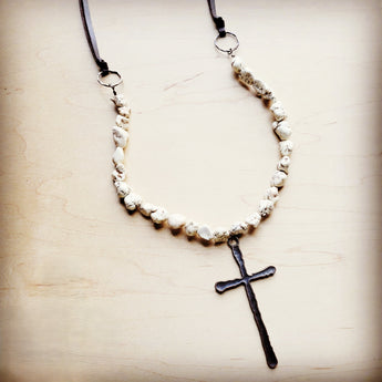White Chunky Turquoise Necklace w/ Large Copper Cross 254g