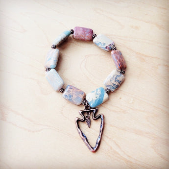 Genuine Aqua Terra Beaded Bracelet w/ Copper Arrow 810v