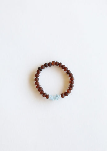 Raw Cognac Baltic Amber + Aquamarine || Adult Bracelet