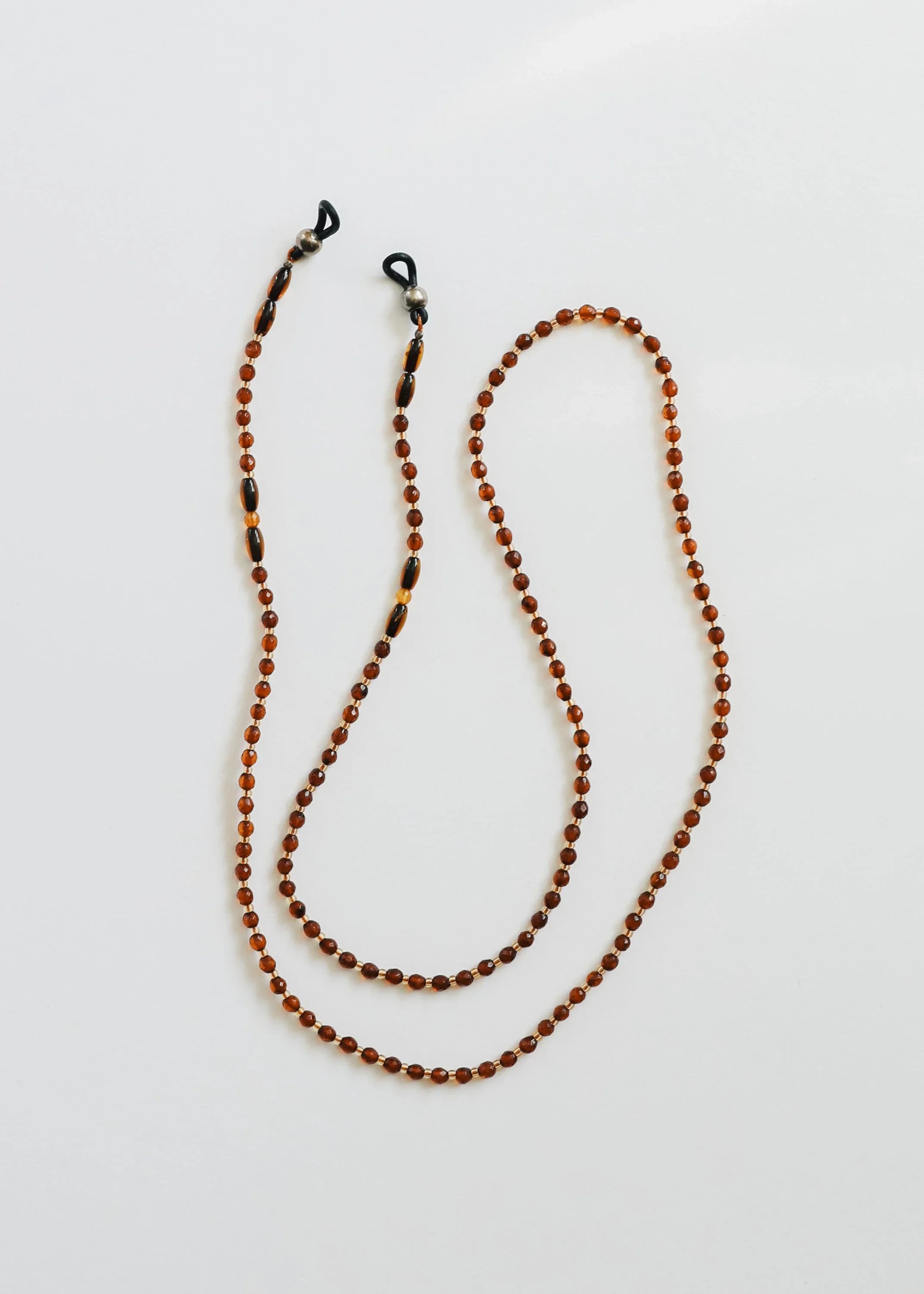 Baltic Sea Amber + Gemstone || Beaded Eyeglass Necklace - Natural Cognac