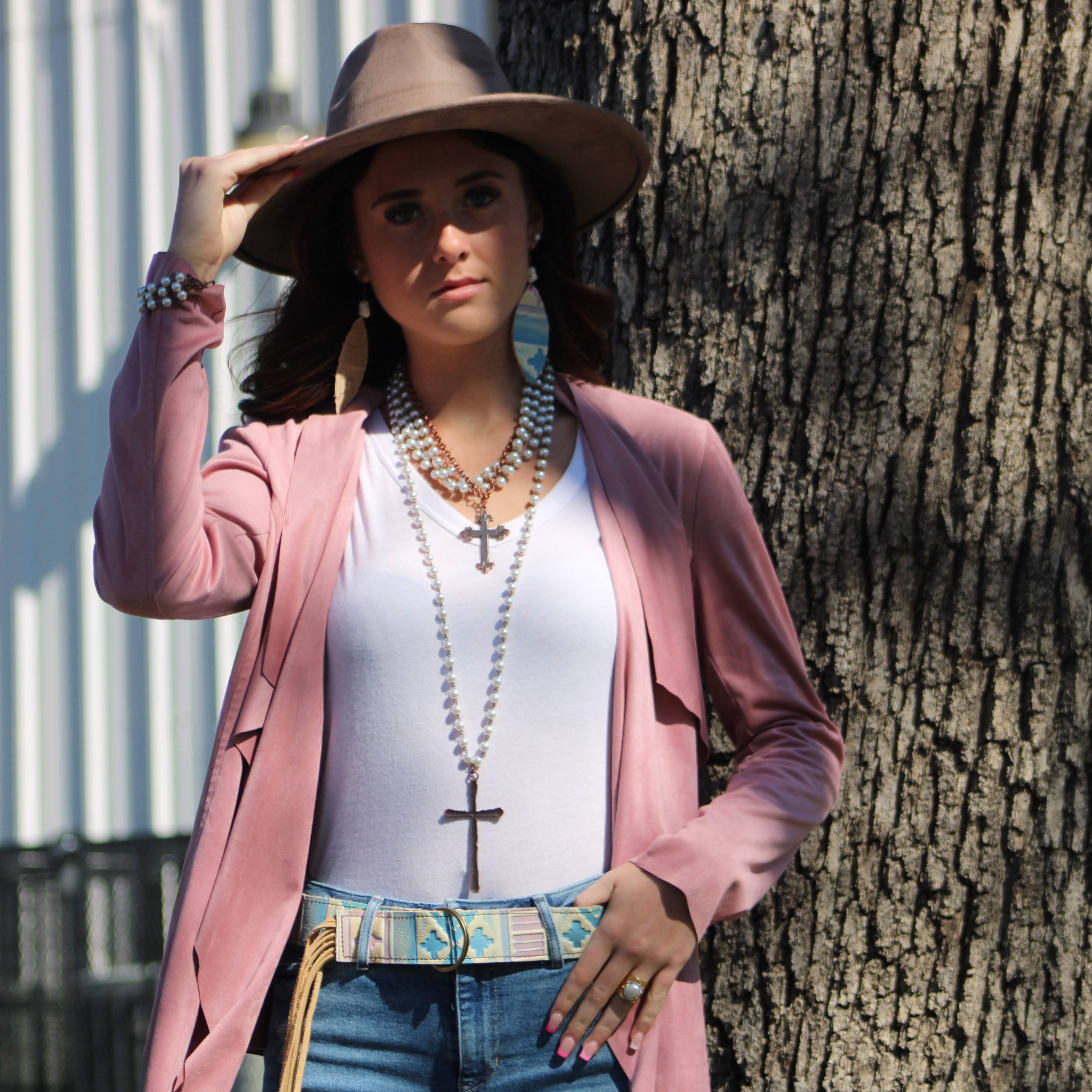 This Pearl Long Beaded Necklace with Antique Copper Cross is a handcrafted boho accessory perfect for layering. Its intricate beaded design and antique copper cross provide a unique and stylish touch to any outfit. With its versatile length, this necklace can be worn in various ways for a trendy and chic look.