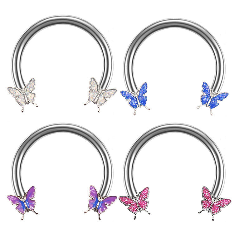 Fashion Personality Butterfly Horseshoe Ring Earrings