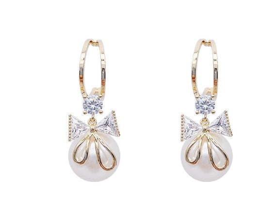 S925 Silver Needle Personalized Bow Pearl Earrings
