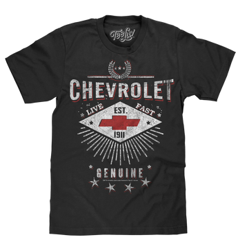 The Chevrolet bowtie logo is an always recognizable symbol of strength, durability and speed - all of the qualities in the American muscle cars that we know and love. We wanted to help hardcore Chevy fans show their love, so our team went to work blending in the authentic Chevrolet Bowtie logo against a bold graphic background featuring the "Live Fast" and "Est. 1911" text.