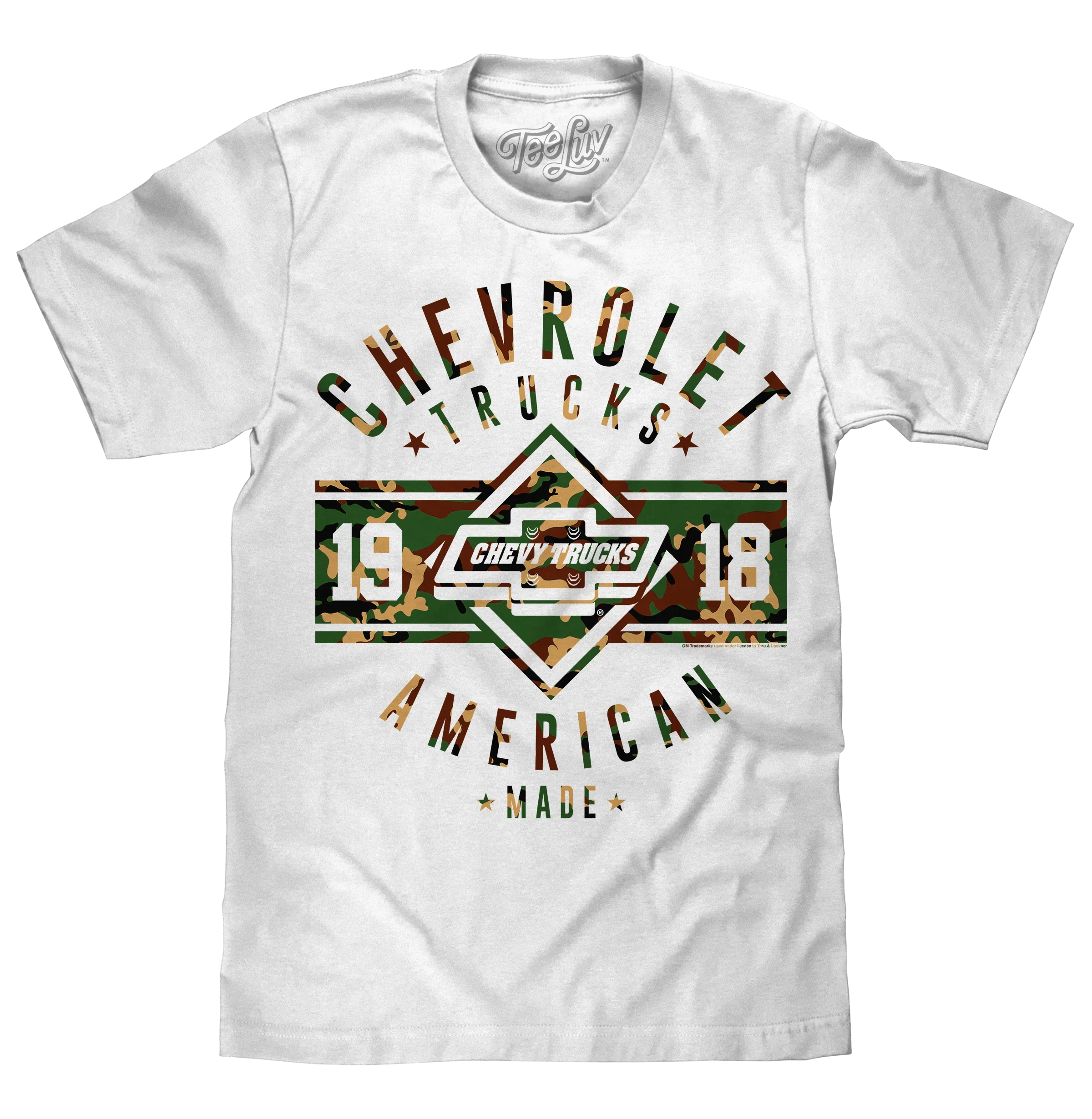 As an extra nod to Chevy trucks' adventurous roots, we added a camoflauge pattern to the graphic and text. To complete the retro look and feel - we printed it on the softest and highest quality white cotton tee around. Perfect for your next summer adventure, or just everyday casual wear!