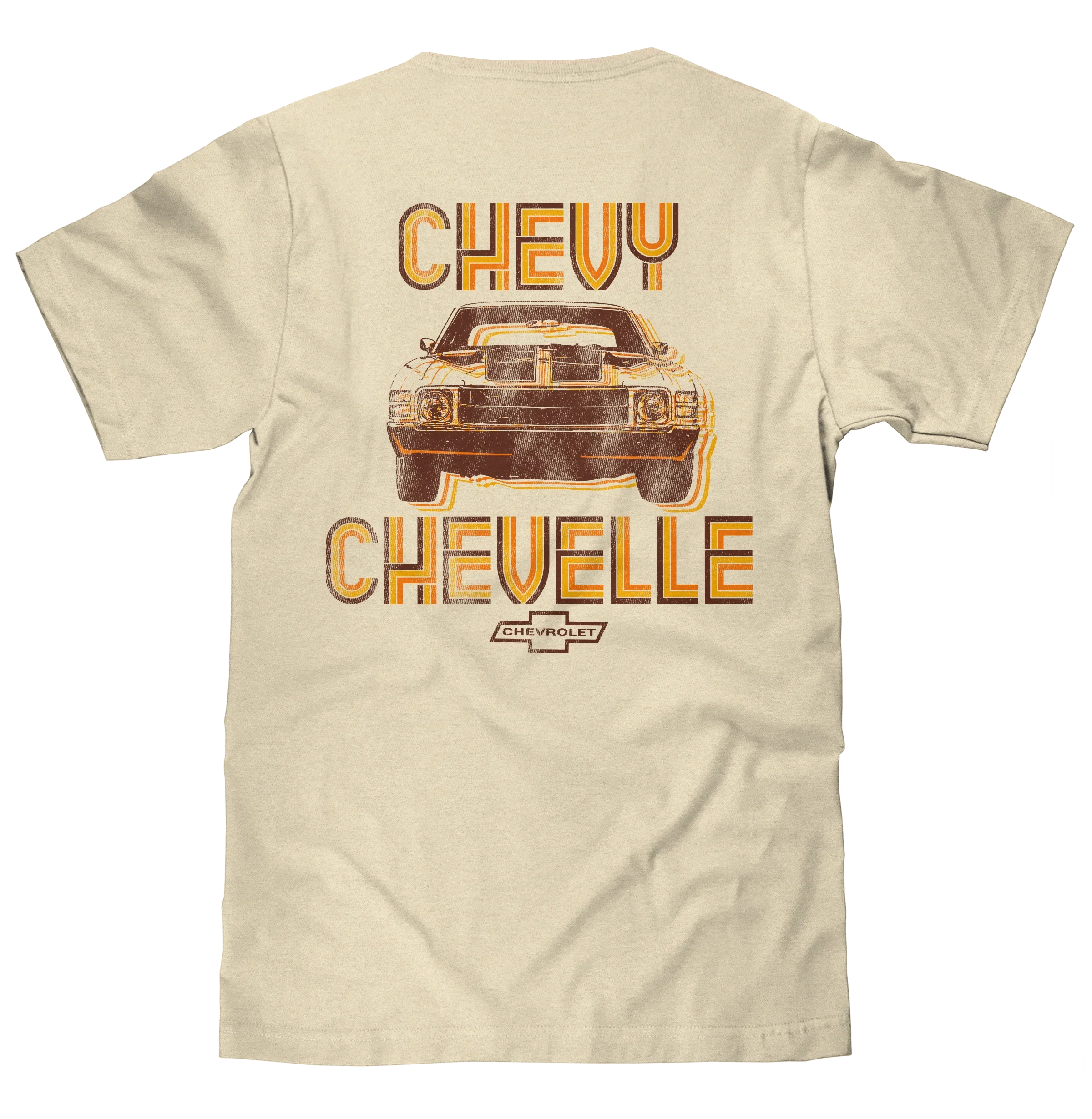 Chevy Chevelle Chevrolet Left Chest Front and Back Print Classic Car T-Shirt - Cream