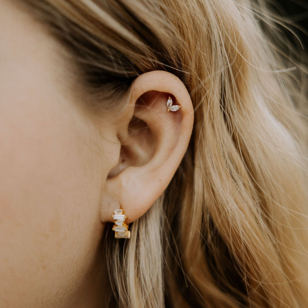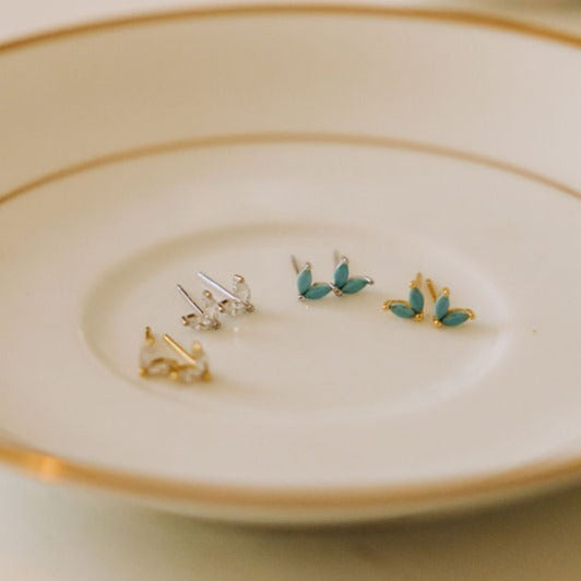 The Quinn Studs are the perfect, dainty earring that goes with everything! They are available in gold vermeil, with either diamond, turquoise, or black onyx. They are hypoallergenic, tarnish and wear resistant, and perfect for sensitive ears. They measure a dainty 6mm and are perfect for a first piercing or as a second/third piercing.