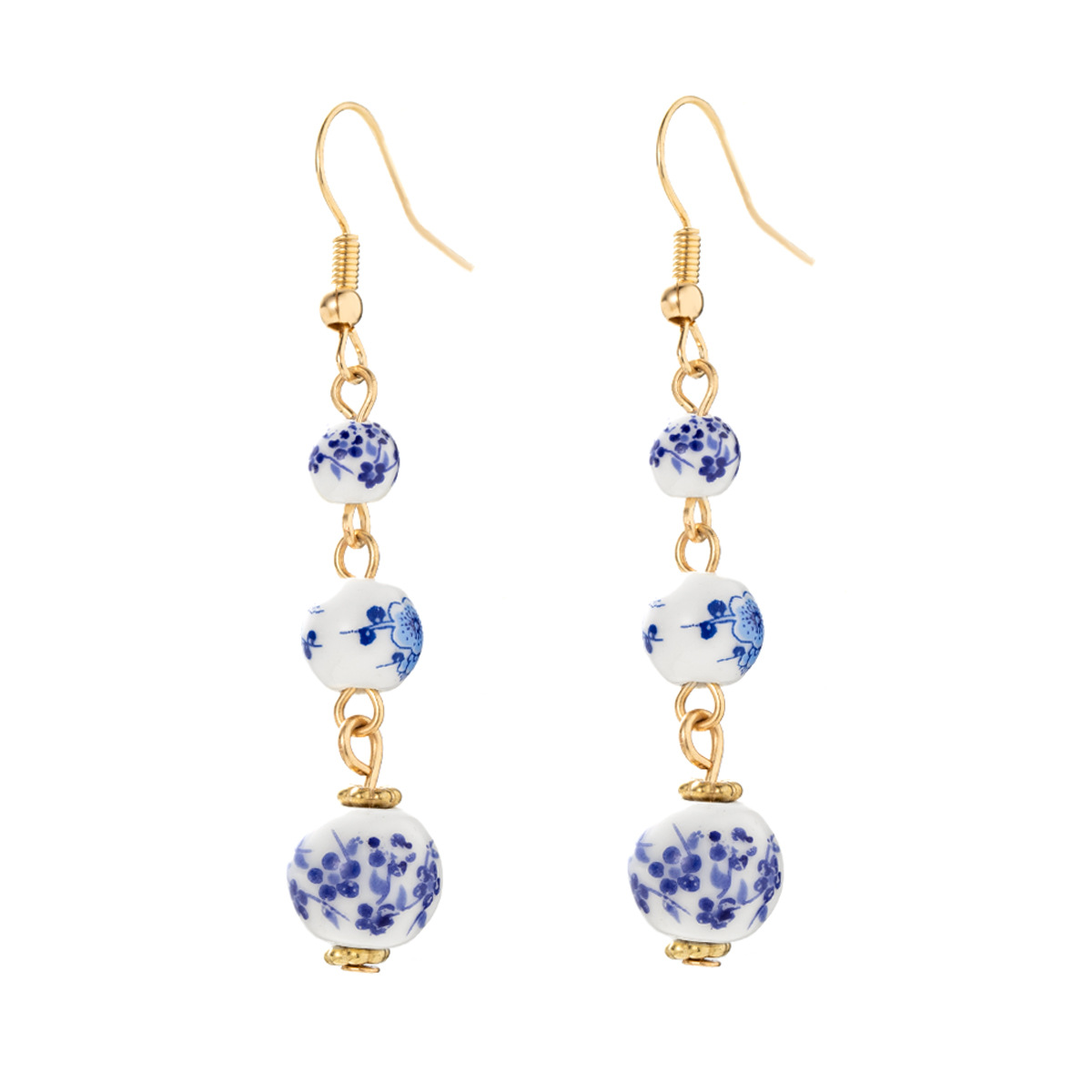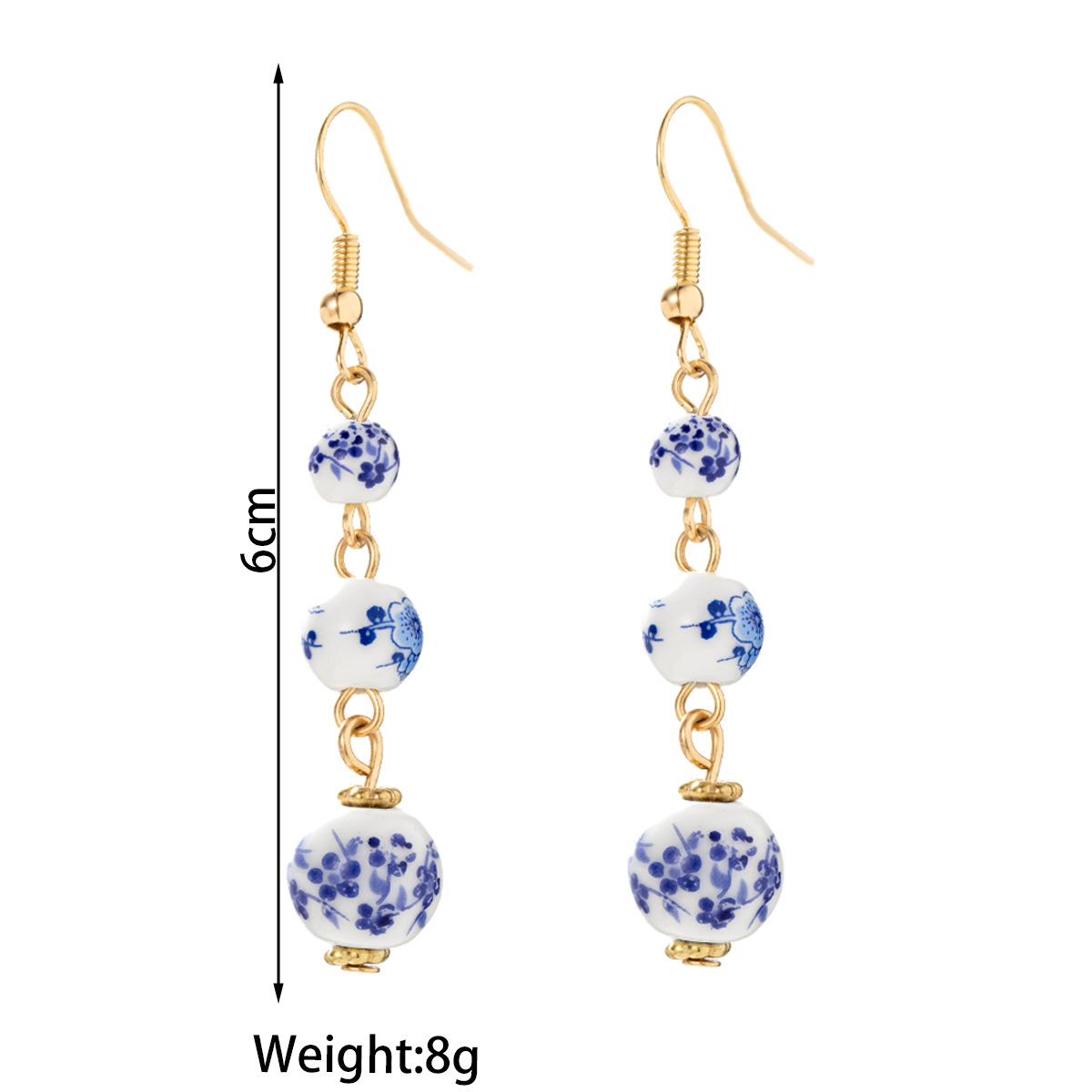 Blue And White Porcelain Ceramic Beads Long Retro Earrings