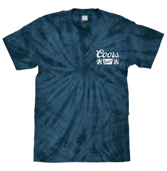 For an added twist, we've left our solid color t-shirts behind, and printed this Coors design on a unique, 100% cotton navy blue tie dye t-shirt.