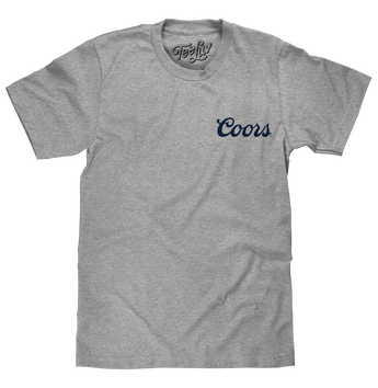 Located at the base of the Rocky Mountain's Front Range, the Coors Brewery has always prided itself on using pure Rocky Mountain water for its line of beers since 1873. It was these perfect waters that gave the golden brew its distinctive taste - making "The Banquet Beer" the legend that it is today! To honor the brew that's been loved for more than a century, the Tee Luv team crafted this vintage styled beer t-shirt featuring the Coors text logo on the left chest. For the back, we've created a tasteful oval Rocky Mountain graphic containing the "Coors Banquet Beer" logo, bordered by "Since 1873 The Legend" and "Golden, Colorado" text. To complete the clean-cut look and feel of this Coors Banquet shirt - we've printed it on a soft, Athletic Heather tee.