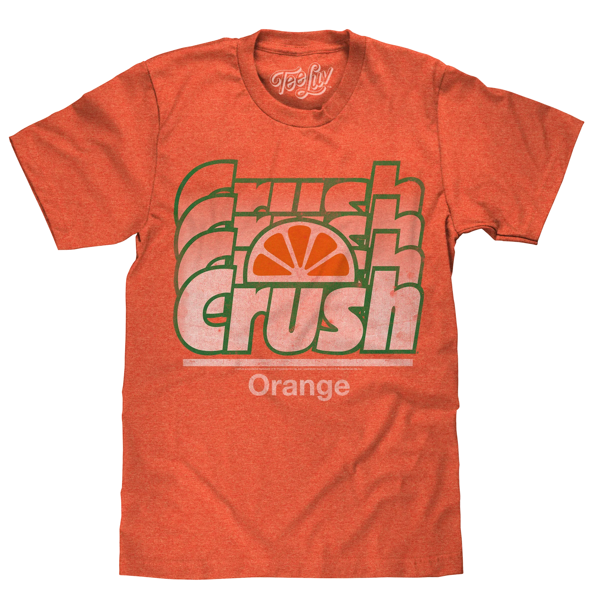 We like Orange Crush soda so much that we just can't stop saying Crush, Crush, Crush, Crush! We’ve taken the authentic licensed Orange Crush logo and printed it a few times to give it a fun, 70s gradient look. To complete the retro feel, we’ve distressed and printed it on the highest quality, orange poly-cotton Heather tee around.