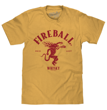 Why is Fireball loved so much? Easy! This "Red Hot" concoction blazed its own trail - winning over loyal fans with its uniquely sweet and fiery kick. We've paid tribute to this famous spirit with a retro tee featuring Fireball Whisky logo, along with a graphic of the fire-breathing dragon mascot. As an added nod to their eye-catching label - we've printed this design on a soft, 100% cotton mustard yellow tee.