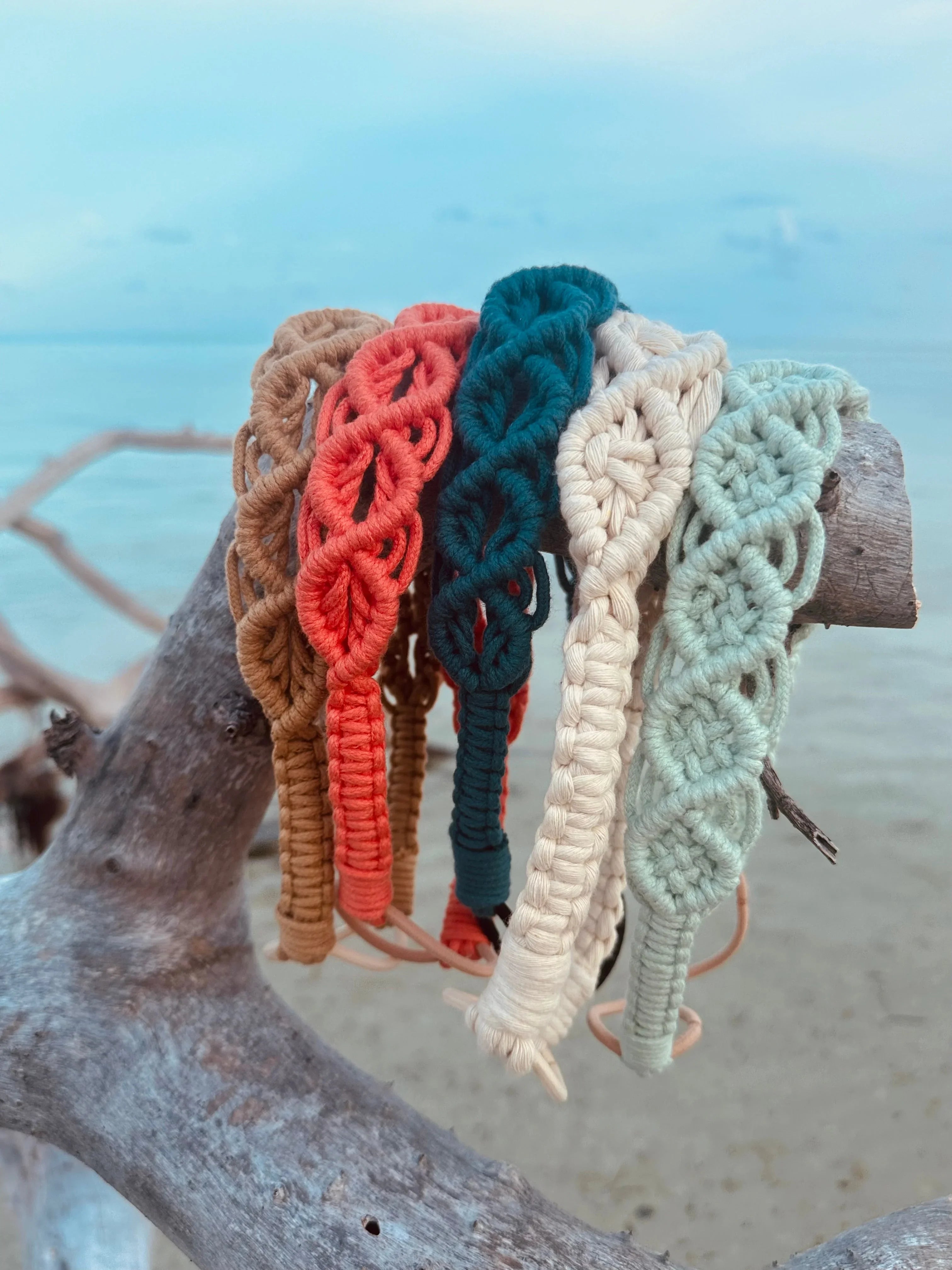 These macrame headbands are handmade with an organic cotton cord and have been artfully designed to last you, a very long time.  Each one provides an effortless chic, beachy vibe, instantly!  We love them here in the Florida Keys, made locally by one of our beautiful island friend