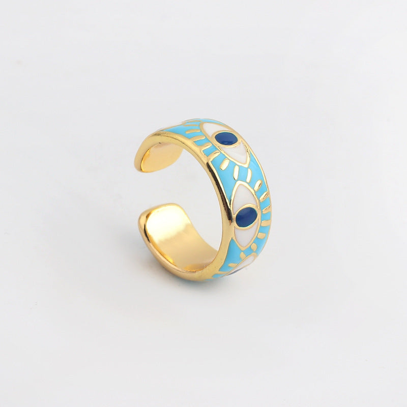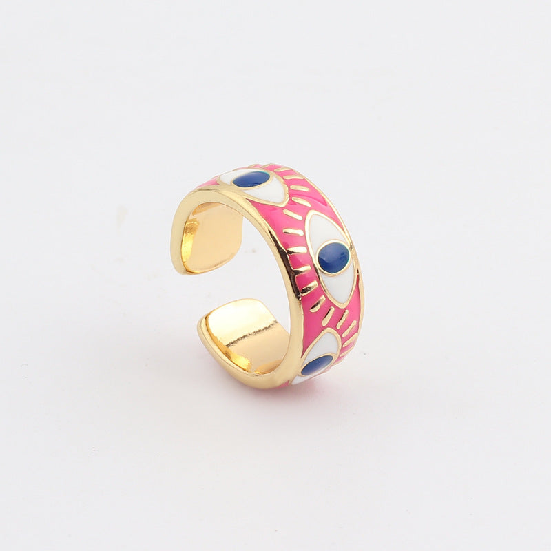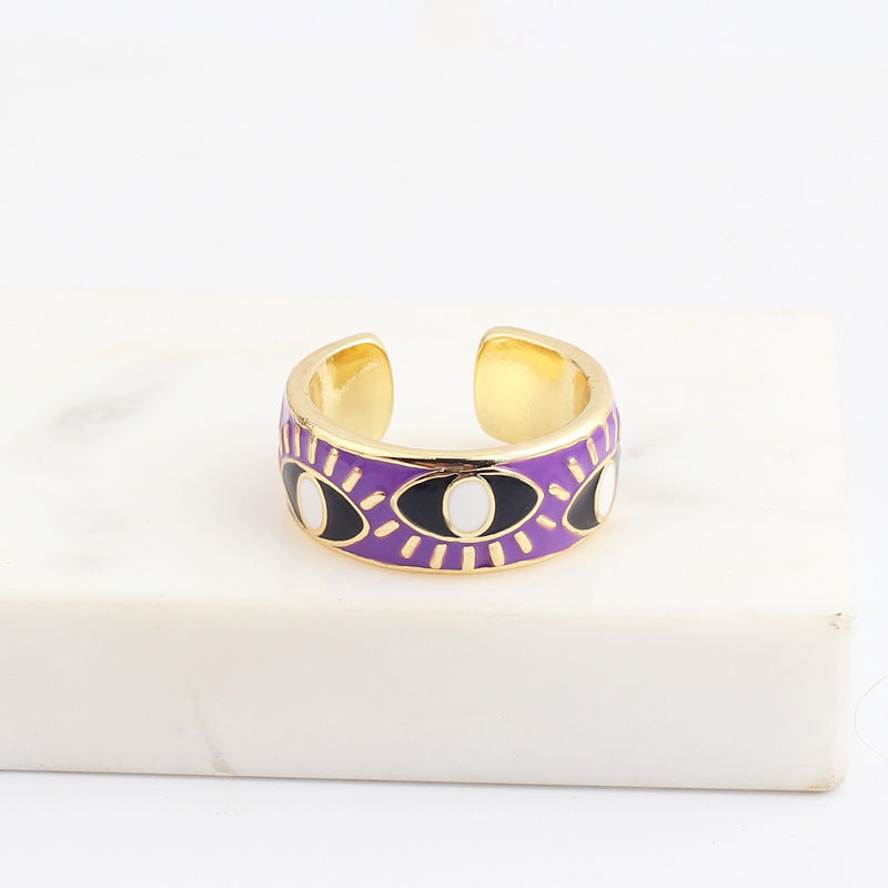 Trendy Hip Hop Women's Gold Plated Drip Oil Eye Ring