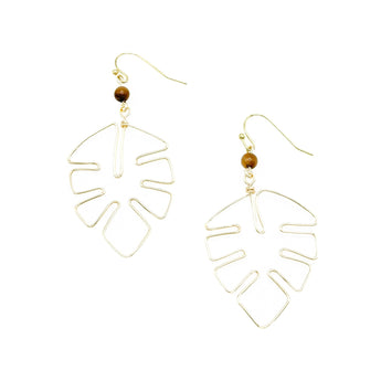 Monstera leaves, which grow natively in Honduras, were the inspiration for our fall leaf set this year. These hand-wired gold plated works of art can remind you of your Honduran artisan who created them for you, while adding that perfect touch to your outfit. A small chocolate brown mother of pearl bead connects the leaf to a hypoallergenic gold plated fishhook. 1 1/8 inch wide and 2 3/4 inches total length.