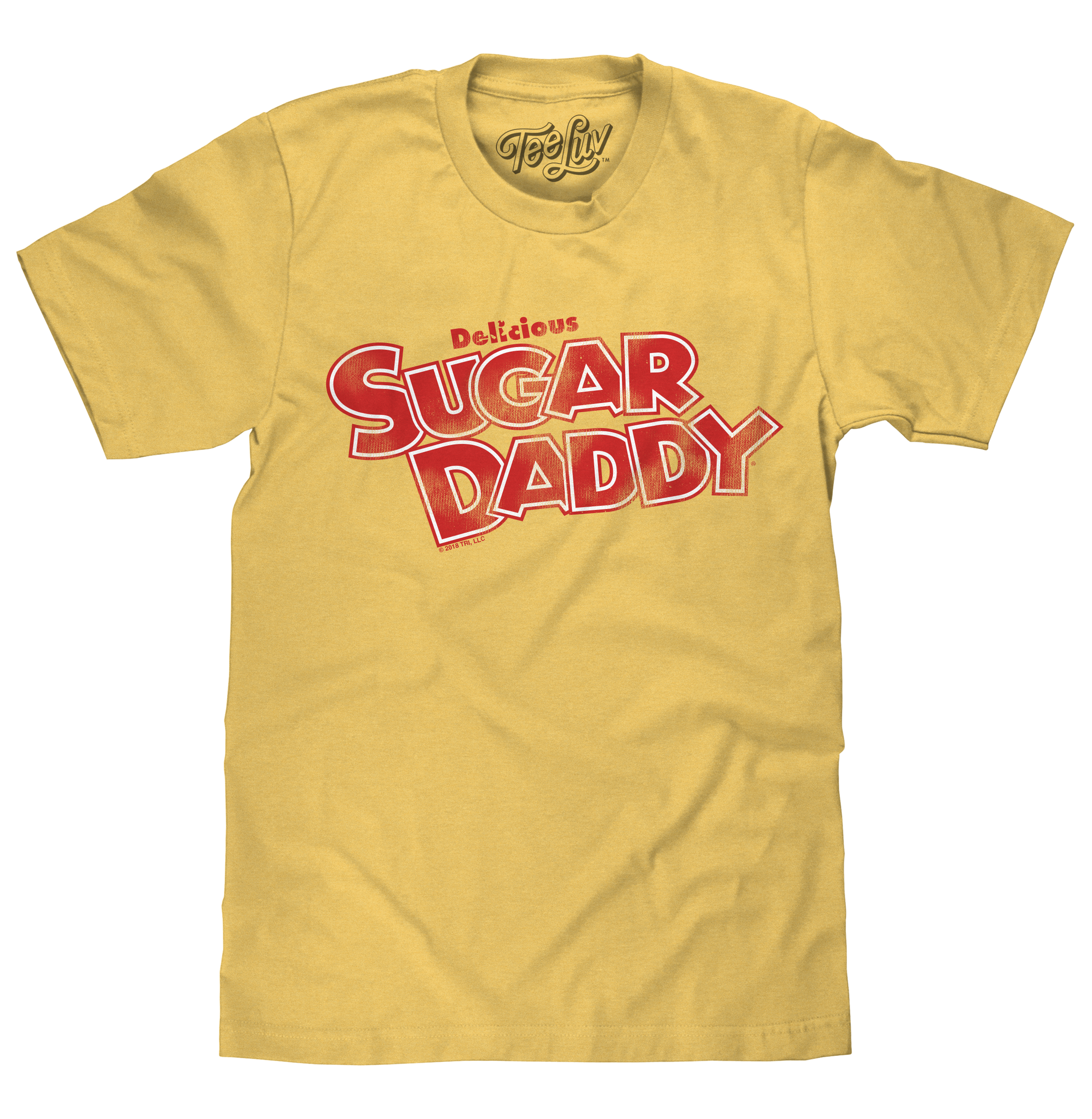 Inspired by Sugar Daddy's pleasing packaging, the Tee Luv team got straight to work crafting this nostalgic t-shirt featuring the faded Sugar Daddy logo. To complete the unmistakable look and feel of this vintage candy shirt - we've printed the design on a soft, light yellow short sleeve tee. The perfect base for that candy costume, or just everyday casual wear!