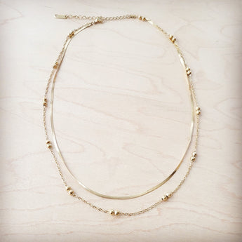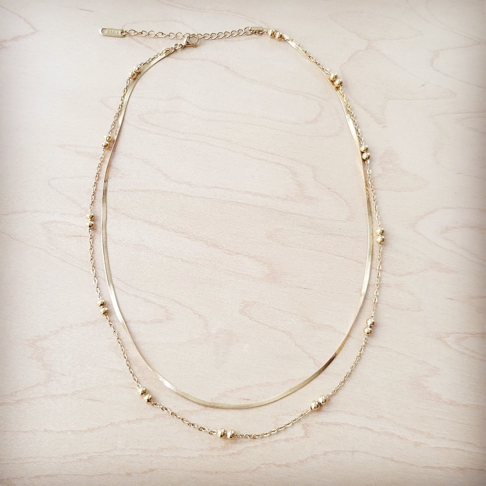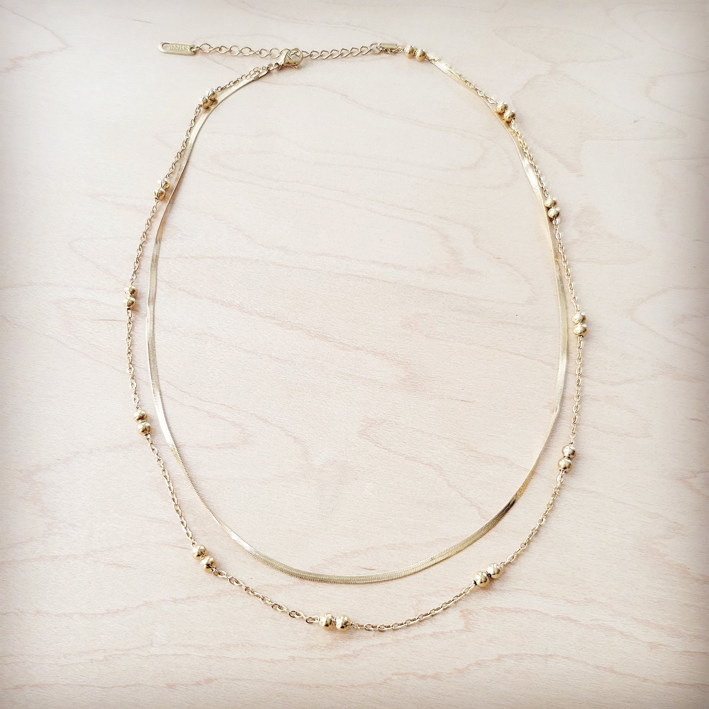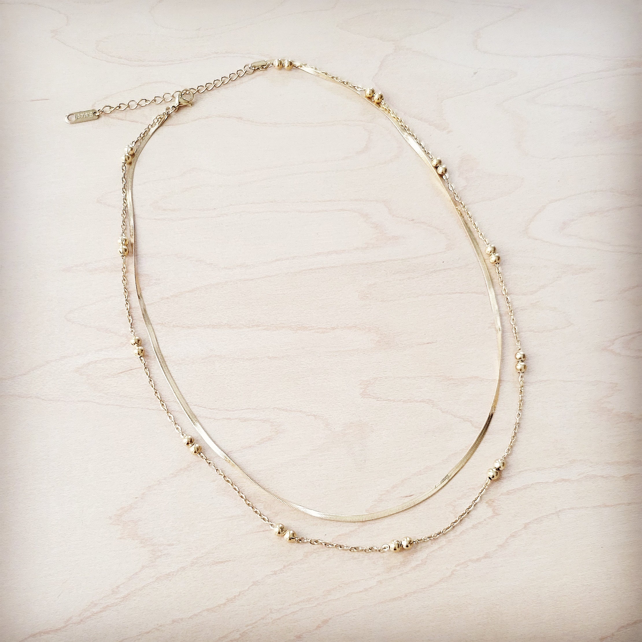 Double Strand Gold Necklace Genuine 18 K Gold Plated 261q