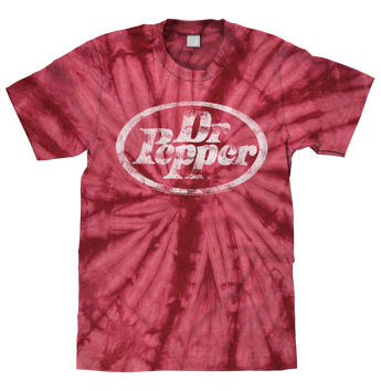 Who can resist the mysterious Dr Pepper? We've paid tribute to this refreshing 23-flavor blend soda with a groovy 60s inspired graphic tee featuring the Dr Pepper oval logo. To complete the retro feel on this Dr Pepper shirt - we've distressed the entire graphic, and printed it on a soft and high quality crimson red tie-dye pattern t-shirt.