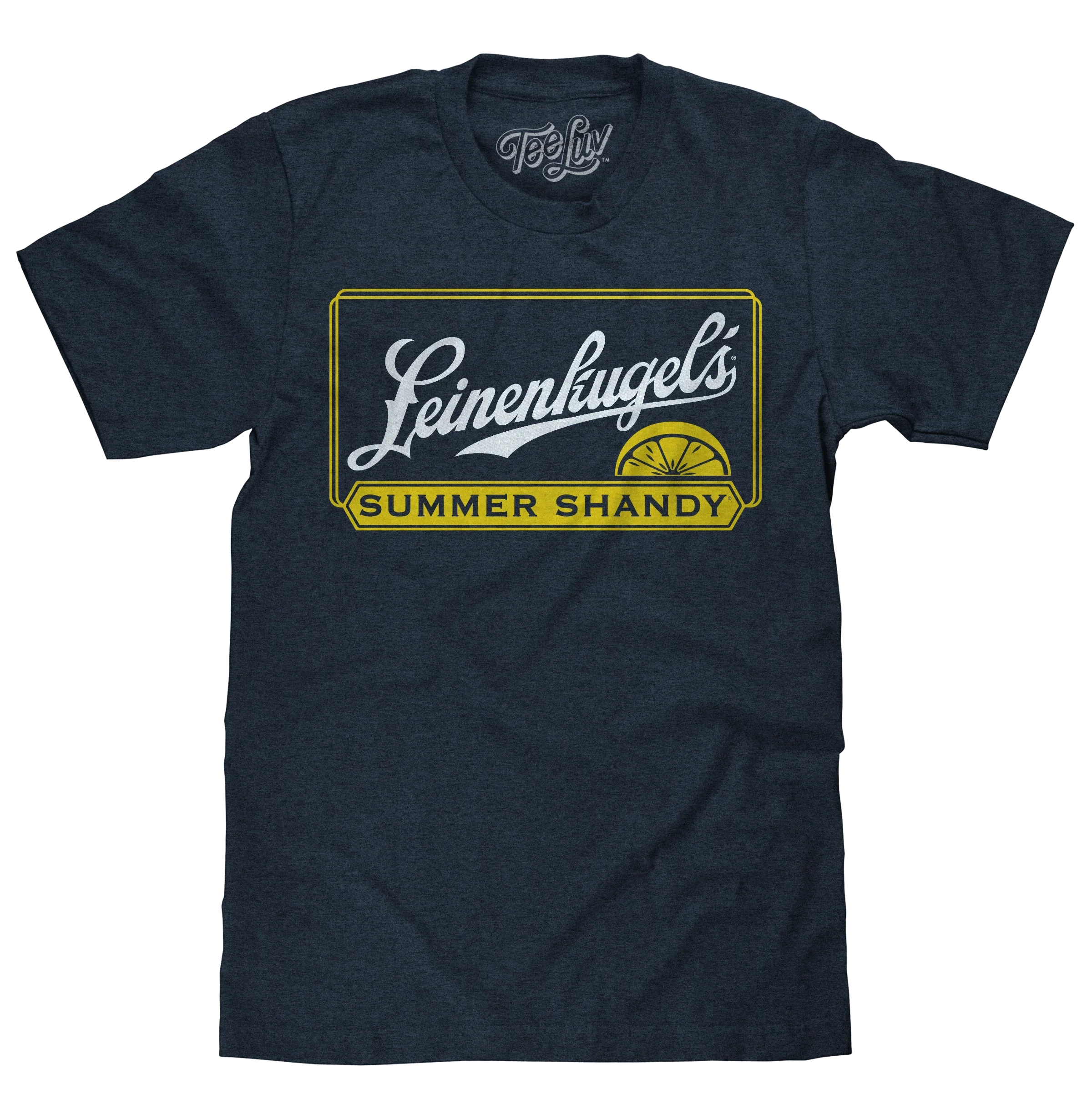 The crisp, delicious taste of your favorite lemon-infused Leinenkugel brew on your new favorite novelty t-shirt! Our team selected the authentic licensed Leinenkugel's Summer Shandy logo for this retro beer tee, and to complete the vintage look and feel - we gave the entire graphic a fun, lightly distressed look and printed it on the highest quality poly-cotton Navy Heather tee around.