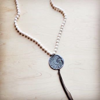 **Long Turquoise Beaded Necklace w/ Indian Pendant 258ka