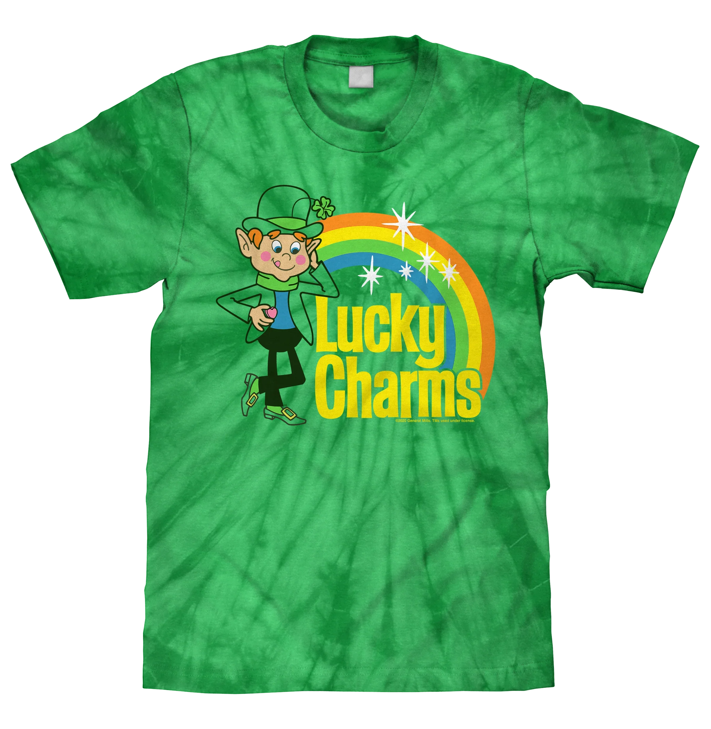 To help this Lucky Charms t-shirt stand out from the crowd - we’ve printed it on a groovy green tie-dye pattern t-shirt.