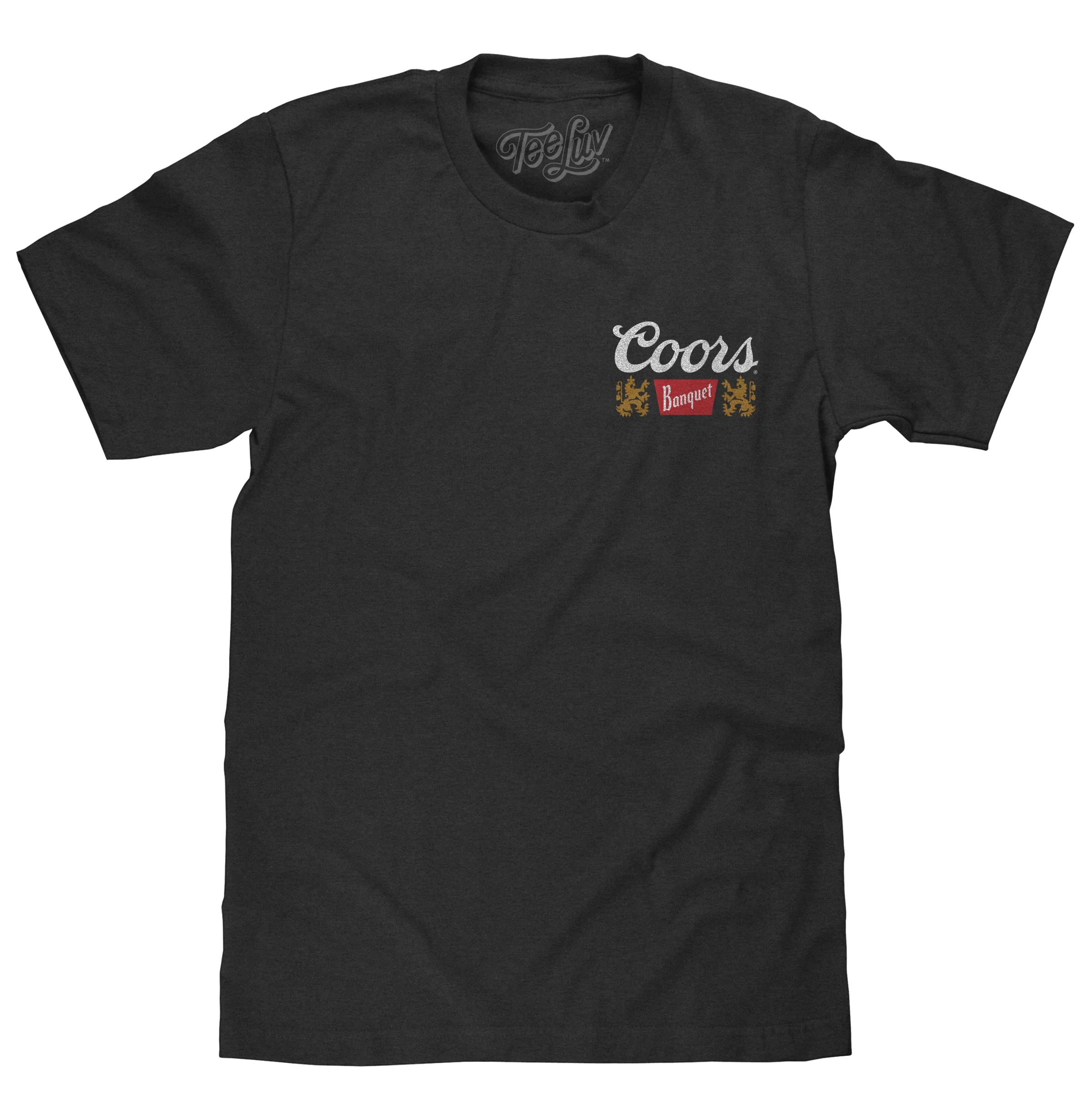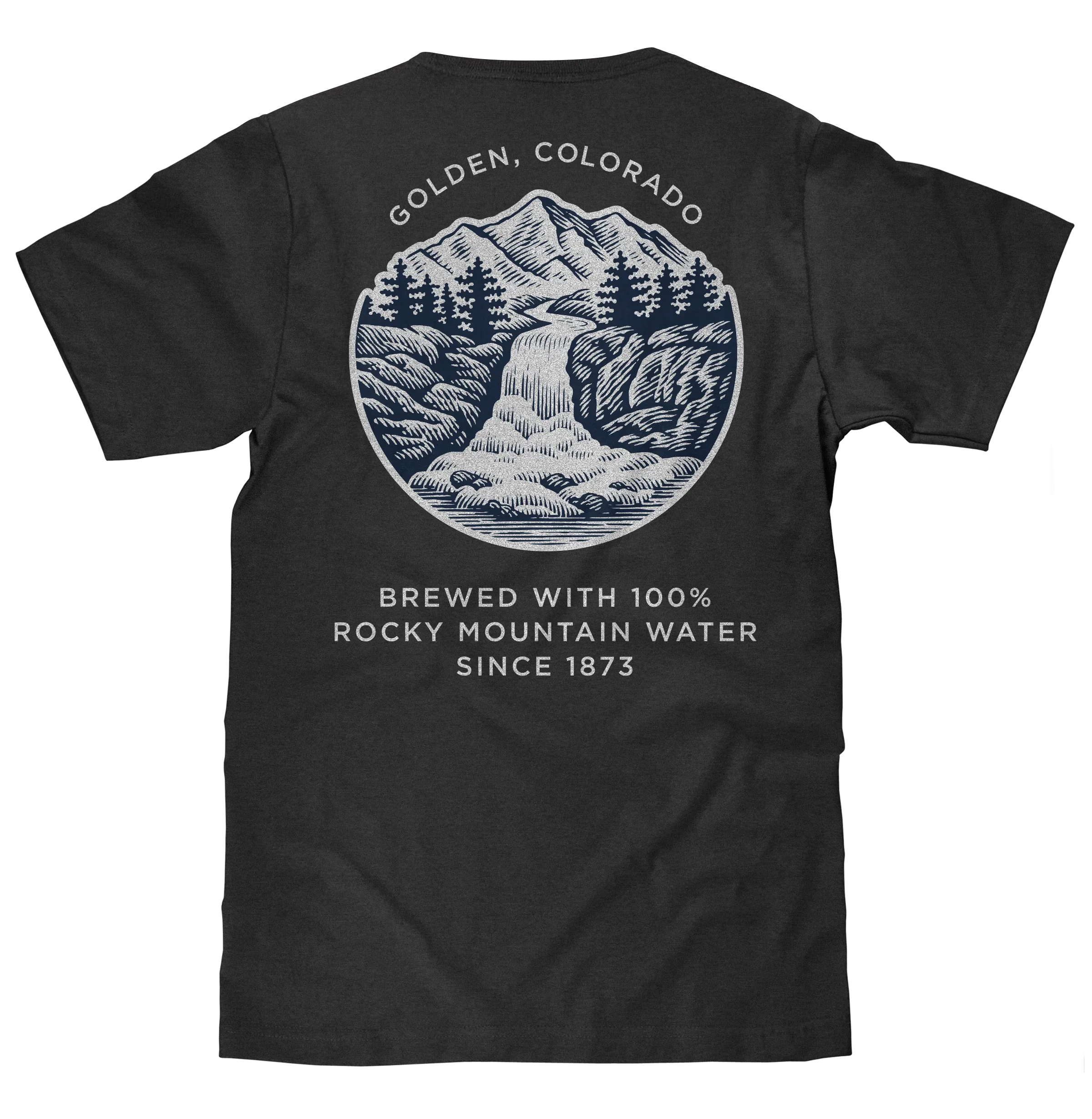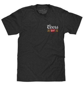 We decided to pay tribute to the refreshing taste of Coors Banquet, and its humble history with a double sided graphic t-shirt featuring the instantly recognizable Coors Banquet logo on the left chest, and a full sized waterfall graphic with "Golden, Colorado" and "Brewed with 100% Rocky Mountain Water Since 1873" text on the back. To complete the retro look and feel of this Coors beer t-shirt - we've printed it on a soft, short sleeve tee, made in the USA.