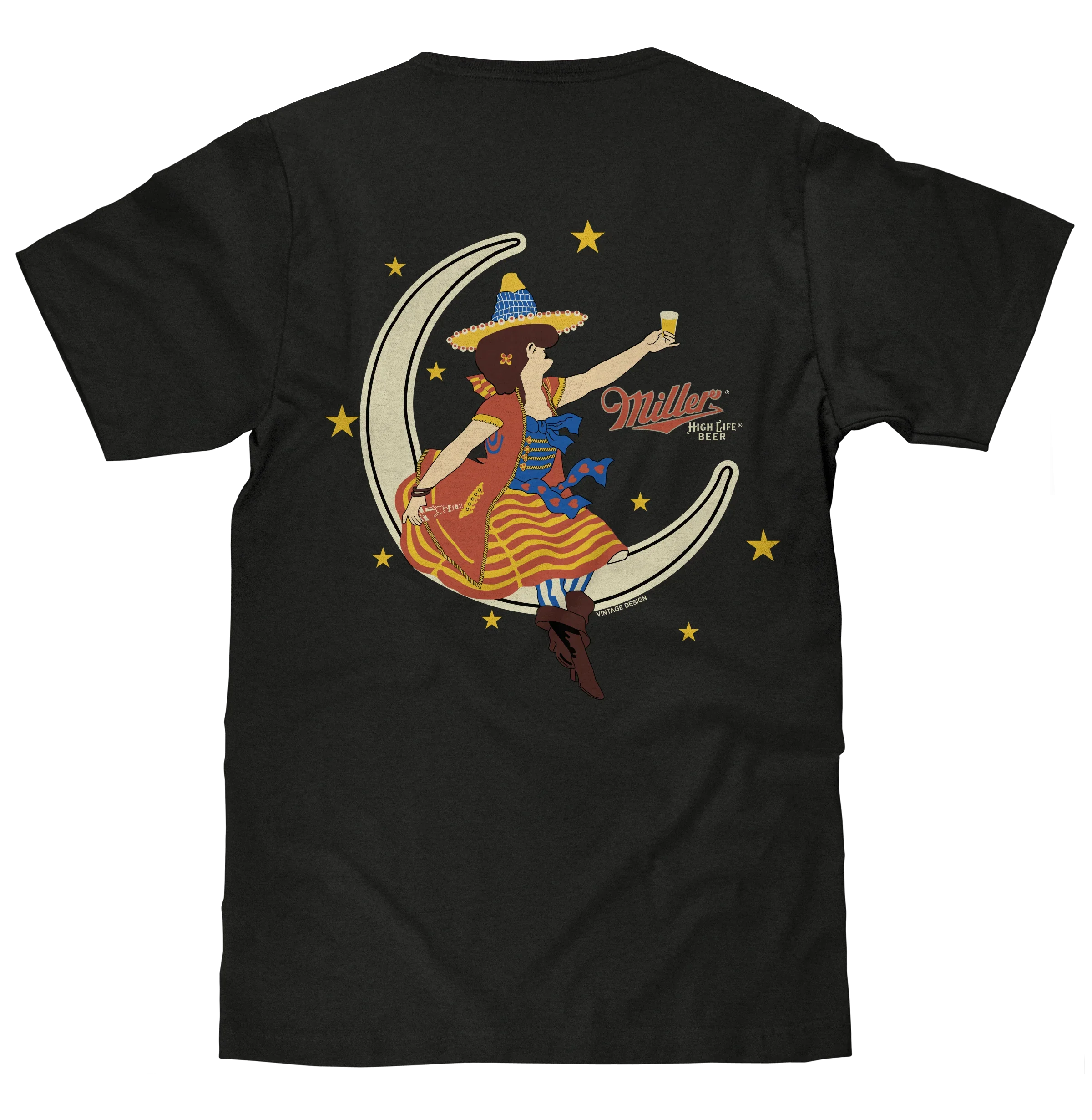 Miller High Life Girl in The Moon Beer Logo T-Shirt - Vintage Black