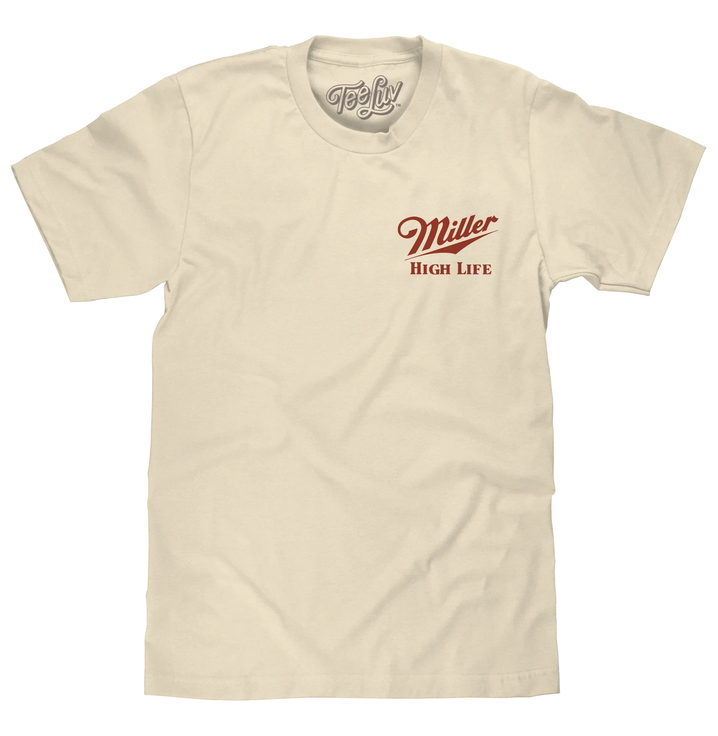 Since its launch in 1903, Miller High Life has been a symbol of quality, tradition and smooth taste - proudly claiming its title as "The Champagne of Beers". To help fellow fans make their next toast stylish - we've created this comfy double-sided graphic tee featuring a subtle Miller High Life logo on the left chest, and for the back - we've selected a full-sized version bordered by hop vines. To complete the relaxed look and feel of this beer brand shirt - we've printed the design on a soft, natural beige cotton tee.