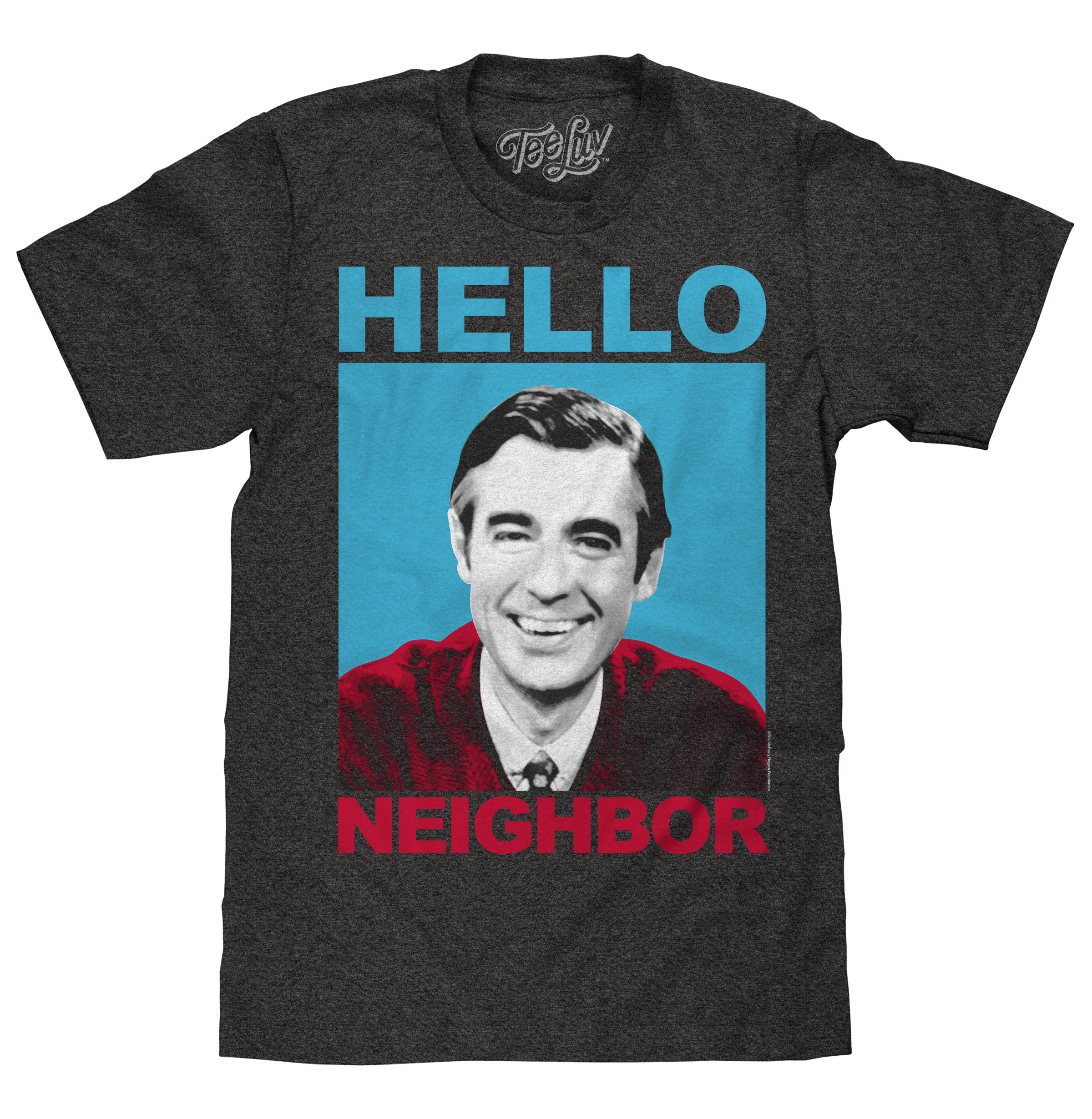 To honor this icon and help carry on his legacy - we featured a graphic of Mr. Rogers wearing his classic red sweater and the phrase "Hello Neighbor" in blue and red. To complete the vintage feel on this Mister Rogers shirt, we’ve printed it on the highest quality poly-cotton charcoal heather tee around. Perfect for bringing a bit of his cheer into the world with you, or just everyday casual wear!