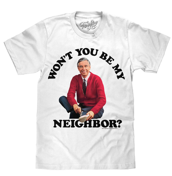 To honor this icon and help carry on his legacy, we've featured a graphic of Mr. Rogers wearing his classic red sweater and blue sneakers with the phrase "Won't You Be My Neighbor?" on this tee. For the complete vintage feel on this Mister Rogers shirt - we’ve printed it on the highest quality, white cotton tee around. Perfect for bringing a bit of his cheer into the world with you, or just everyday casual wear!