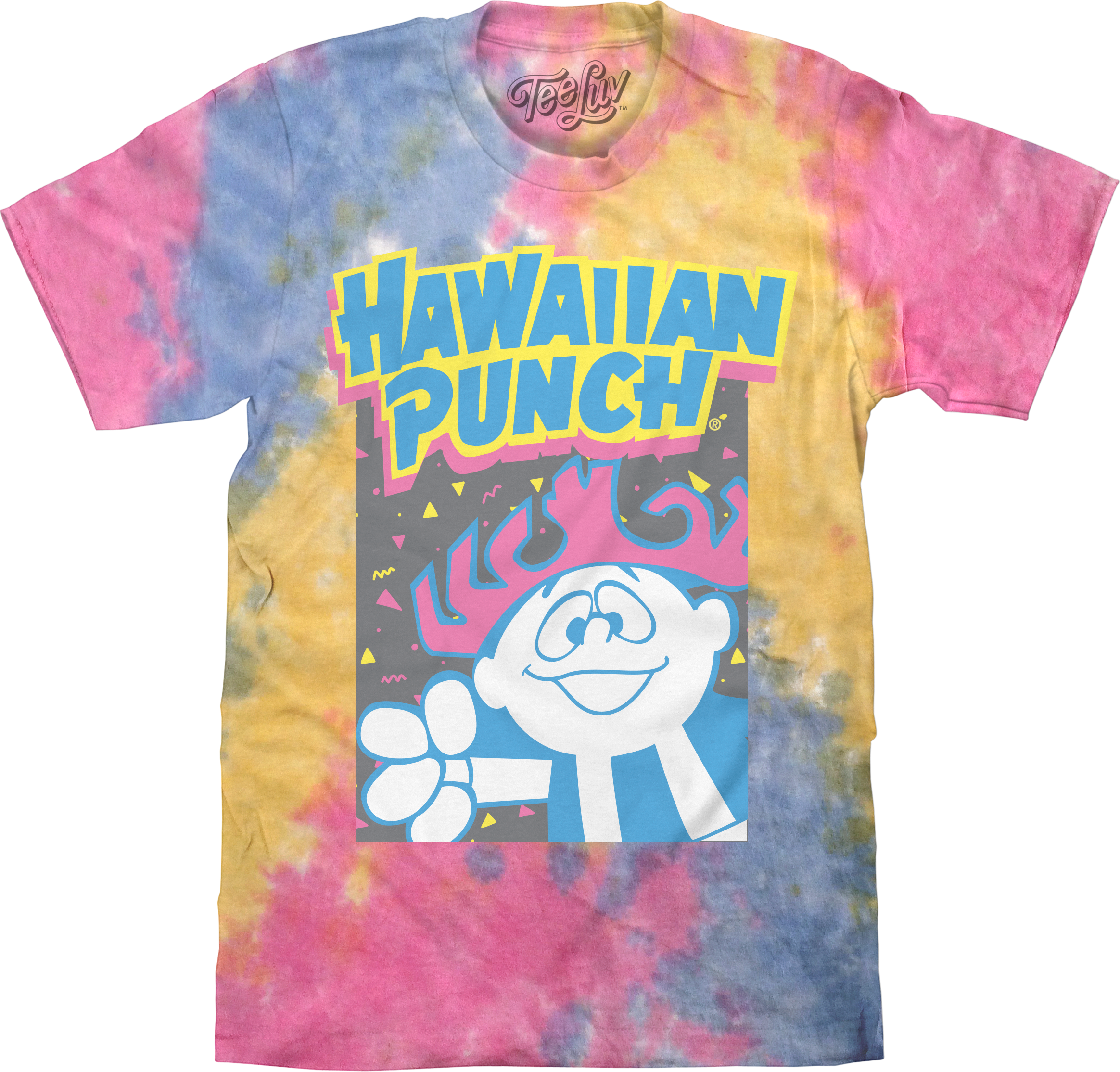To ensure that this Hawaiian Punch stands out from the crowd - we've printed the graphic on a colorful Sherbert tie dye cotton tee.