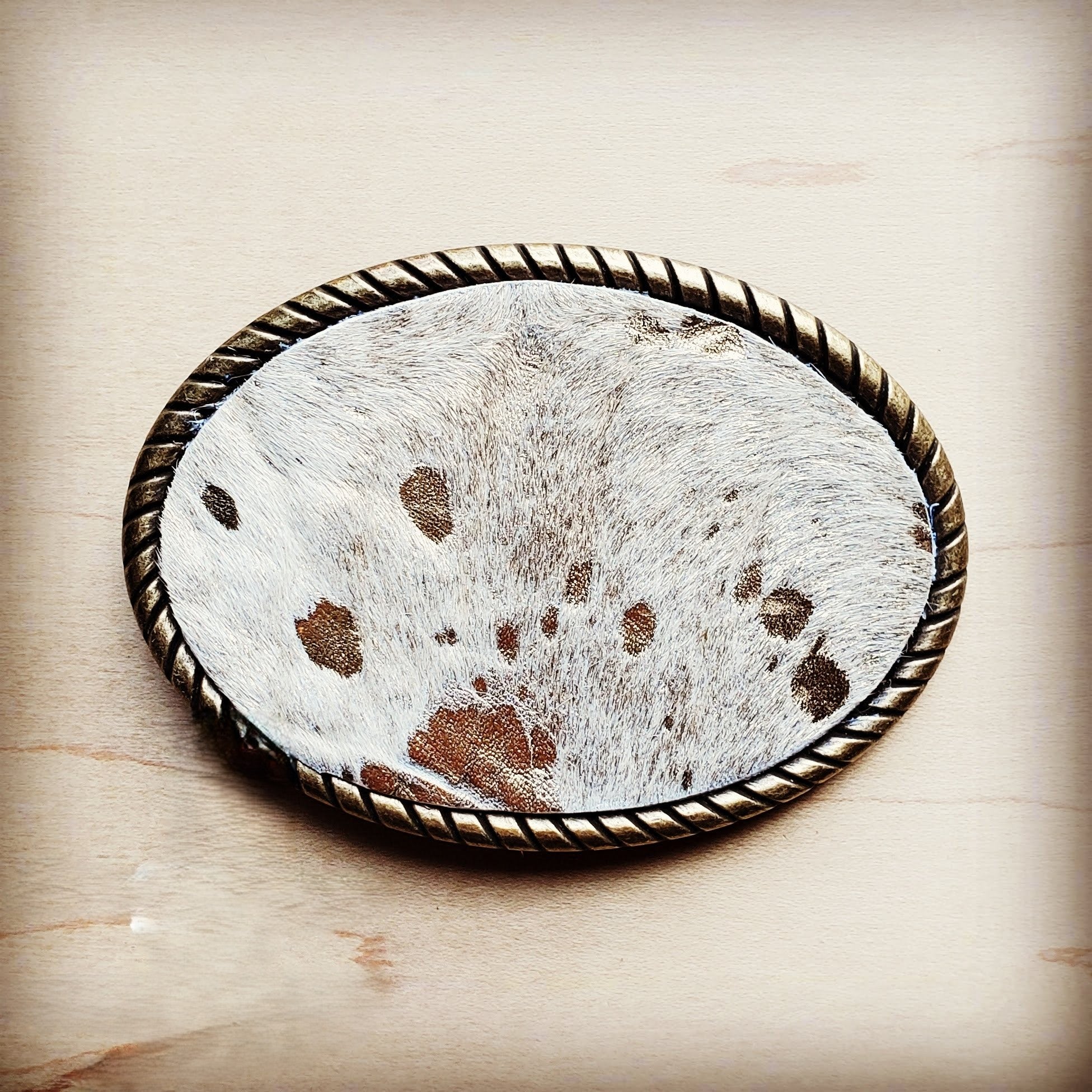 Rope Edge Gold Metallic Hair on Hide Leather Belt Buckle 902b