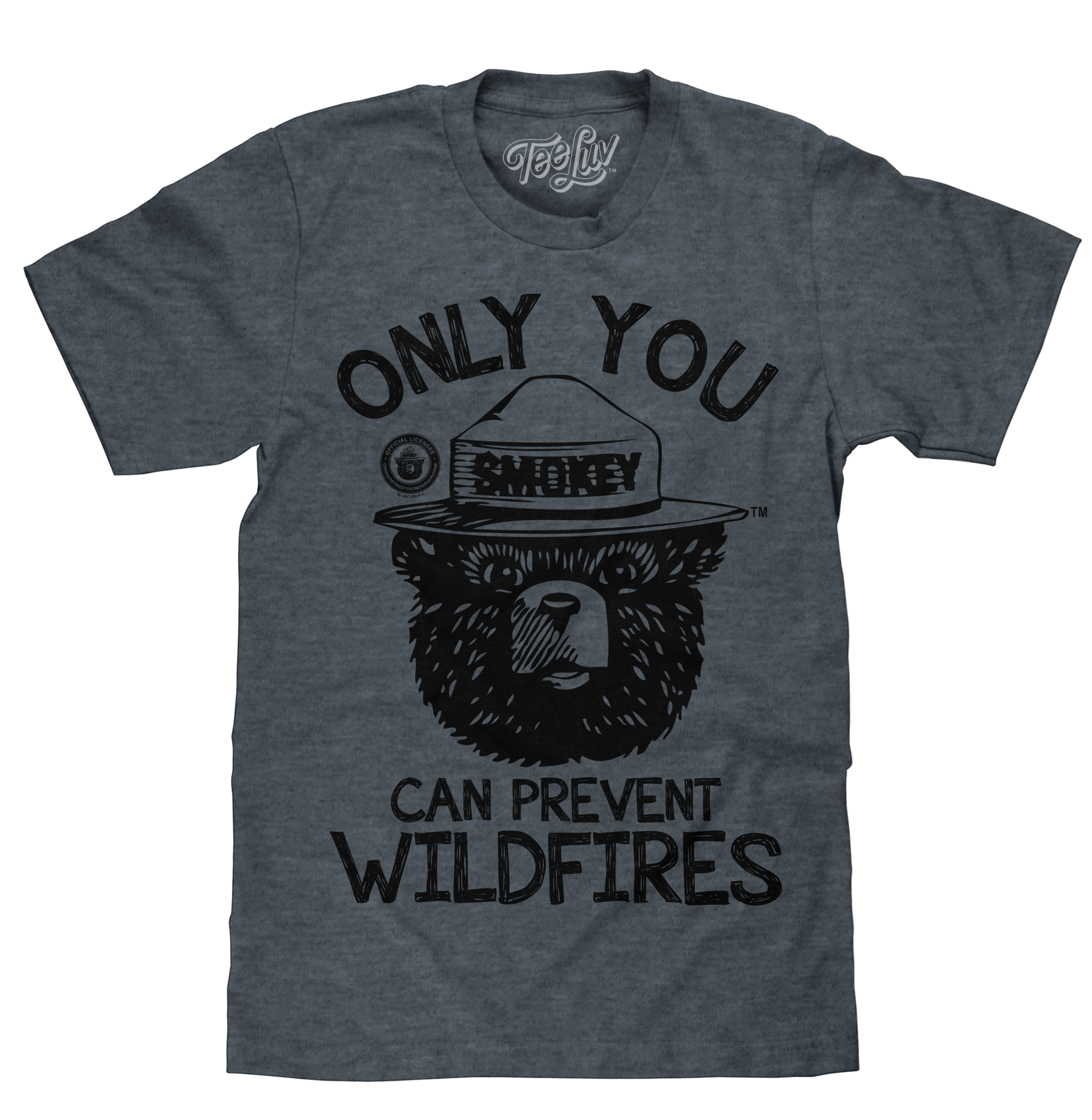 Smokey Bear has been there over the last 70 years to remind us that we need to do our part to help prevent dangerous wildfires that can destroy our beautiful forests and wildlife here in the USA. To help spread his message, we’ve featured the authentic licensed Smokey Bear mascot and "Only You Can Prevent Wildfires" text on this graphic tee.
