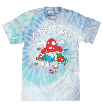 Rejoice Smurfs fans! The cartoon you know and love is back, and on a sweet graphic tee you can wear! We've paid tribute to the lovable but sleepy cartoon character with a comfy tee of his very own featuring Lazy Smurf having a nap under a mushroom, along with the "Lazy Day" text. To ensure that this Smurfs shirt stands out from the crowd - we've printed the design on a soft, Lagoon tie dye cotton tee.