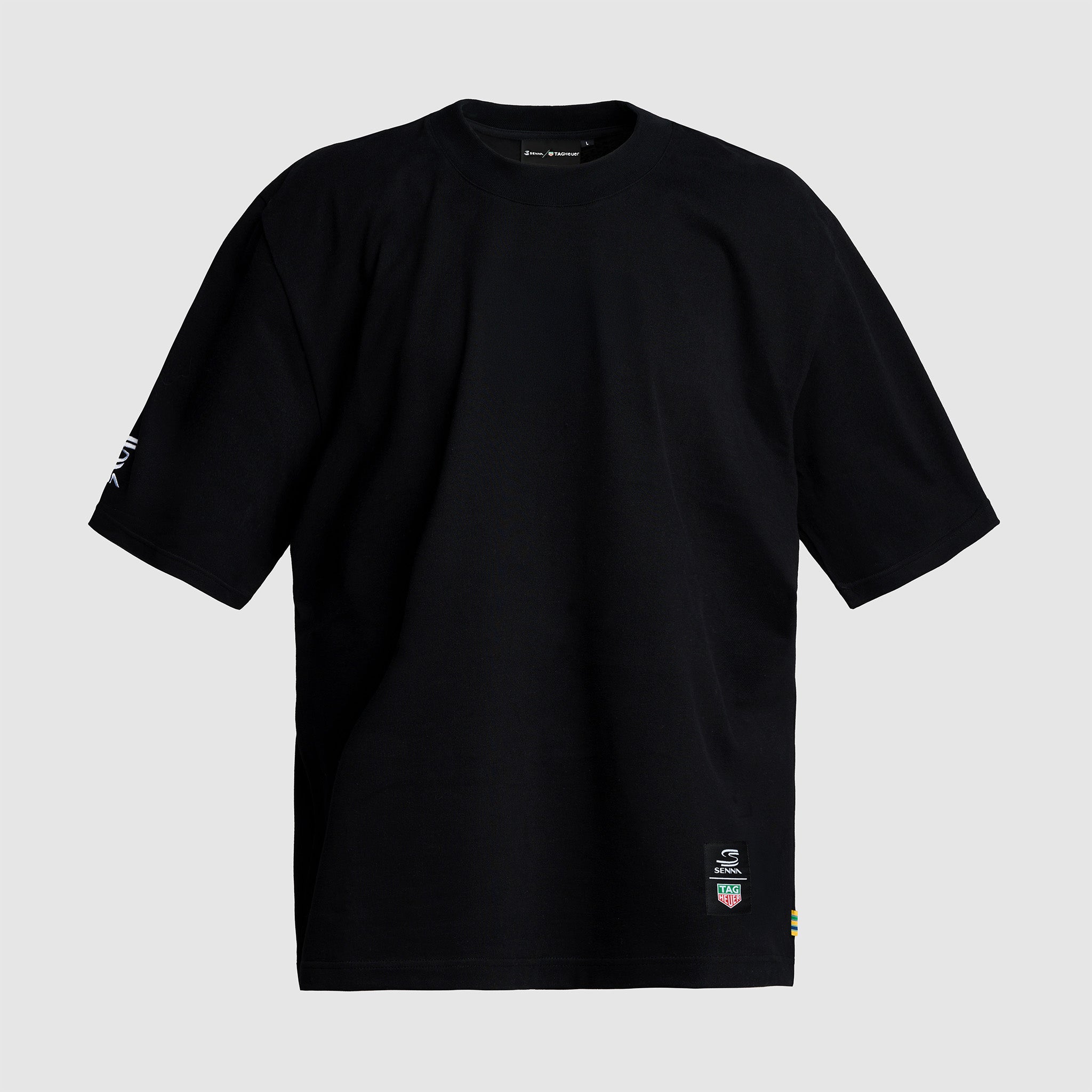 The TAG Heuer x Senna Oversize Badge Tee strikes the perfect balance between subtle detail and bold tribute. Available in timeless black or white, the front features a clean, understated pairing of the TAG Heuer and Senna logos — a quiet nod to greatness.