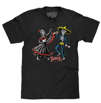 We've paid tribute to this spicy sauce created by our friends south of the border with its very own graphic tee shirt featuring the Tapatio logo, and festive Day of Dead calacas (that's skeletons for the rest of us). To complete the vintage look and feel on this Tapatio shirt - we've printed it on the highest quality black cotton tee around.