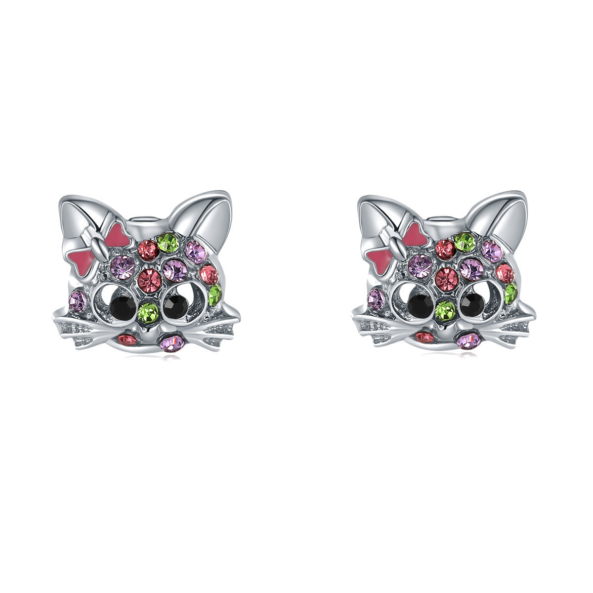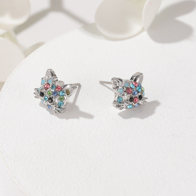 Women's Multicolor Cute Kitty Necklace And Earrings