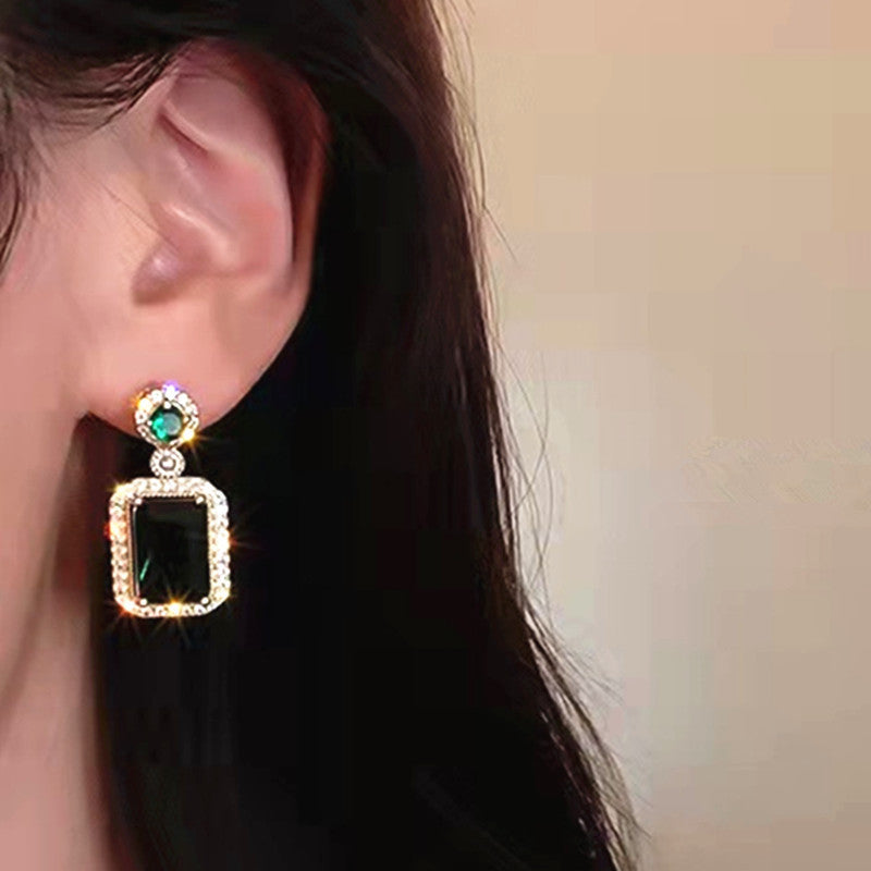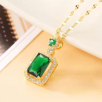 Women's Niche Retro Square Emerald Titanium Steel Necklace